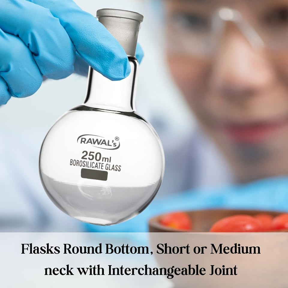 Glass Boro 3.3 volumetric flasks ensure durability, heat resistance, and chemical safety.
